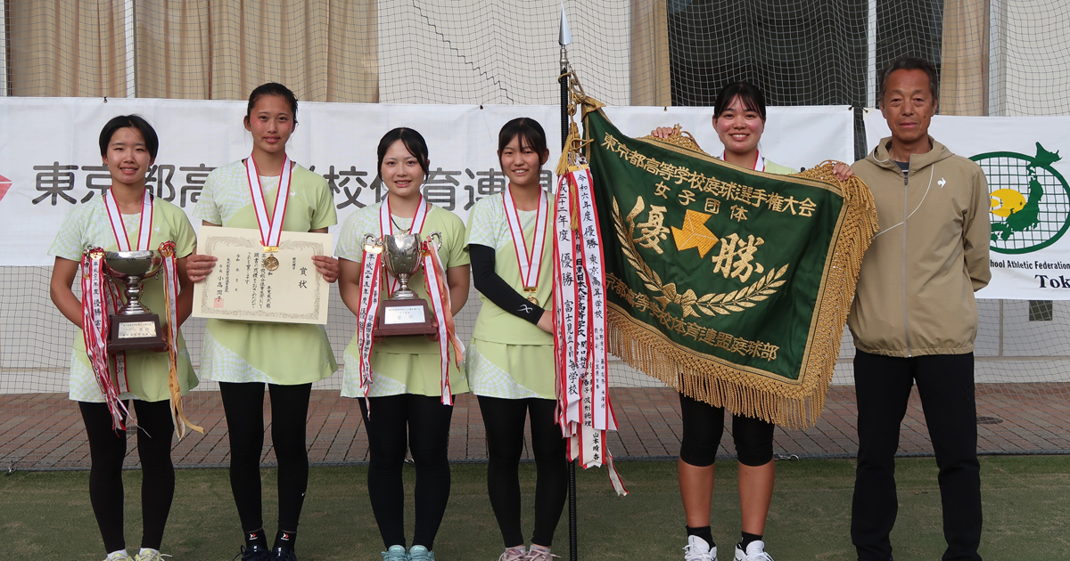令和7年6月1日(日)、第65回東京都大会団体戦(1複・2単)準決勝・決勝戦が行われ、本校は決勝戦において早稲田実業に2勝1敗で勝ち、東京都226校の頂点に立ちました。
